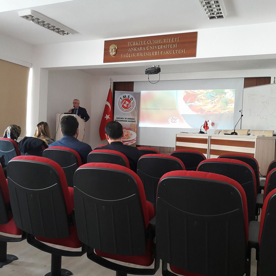 Türkiye Makarna Sanayicileri Derneği Yönetim Kurulu Başkanı Sayın Abdülkadir KÜLAHÇIOĞLU ,21 Mart 2017 Tarihinde Ankara Üniversitesi Sağlık Bilimleri Fakültesi Beslenme ve Diyetetik Bölümünde ,Beslenme ve Diyetetik Bölümü öğrencilerine ‘Besin Kimyası dersinde ‘Makarnanın ,tarladan sofraya kadar olan serüvenini içeren , hikayesini ‘ ve iş yaşamındaki deneyimlerini anlattı.Abdülkakadir Bey’i Beslenme ve Diyetetik Bölüm Başkan Yardımcısı Yrd.Doç.Dr.Alev KESER karşıladı. Makarnanın tarladan sofraya kadar olan üretim süreçlerini anlatan barko gösterimi de yapıldı.Öğrenciler makarna dair merak ettikleri konular hakkında Abdülkadir Bey’e sorularını yönelttiler.Öğrencilerin sektöre ilgisi yoğundu.Ders bitiminde öğrencilere fakülte bahçesinde makarna ikramında bulunuldu.