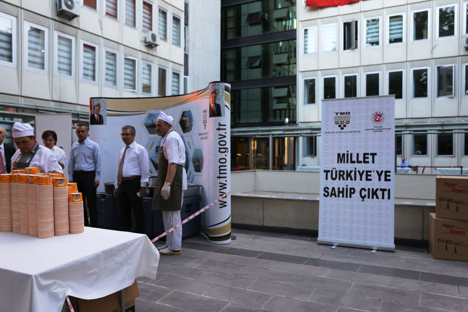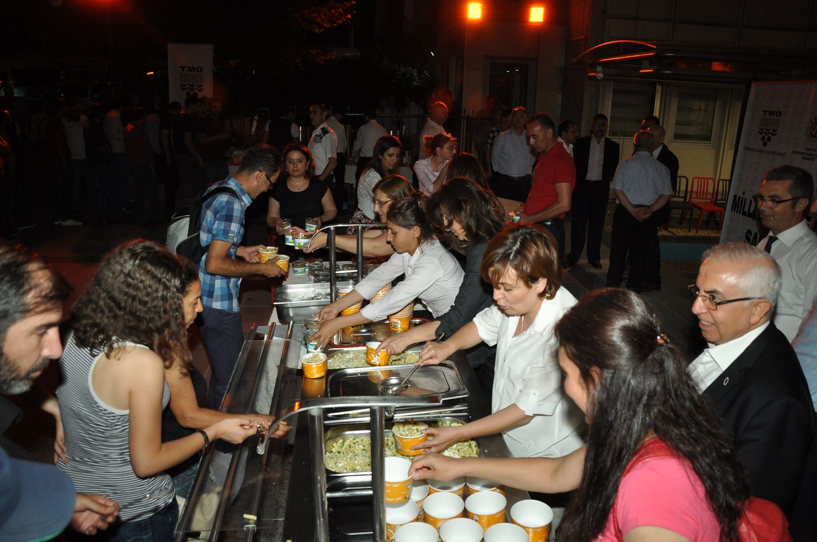 Toprak Mahsulleri Ofisi (TMO) ile Türkiye Makarna Sanayicileri Derneği (TMSD) işbirliği içinde Ankara Kızılay Meydanı’nda demokrasi nöbeti tutan halka kumanya dağıtımı yapıyor.