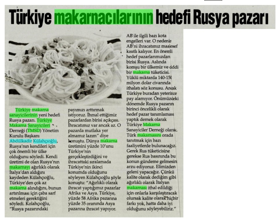 Makarna sektörü hakkında güncel haberler