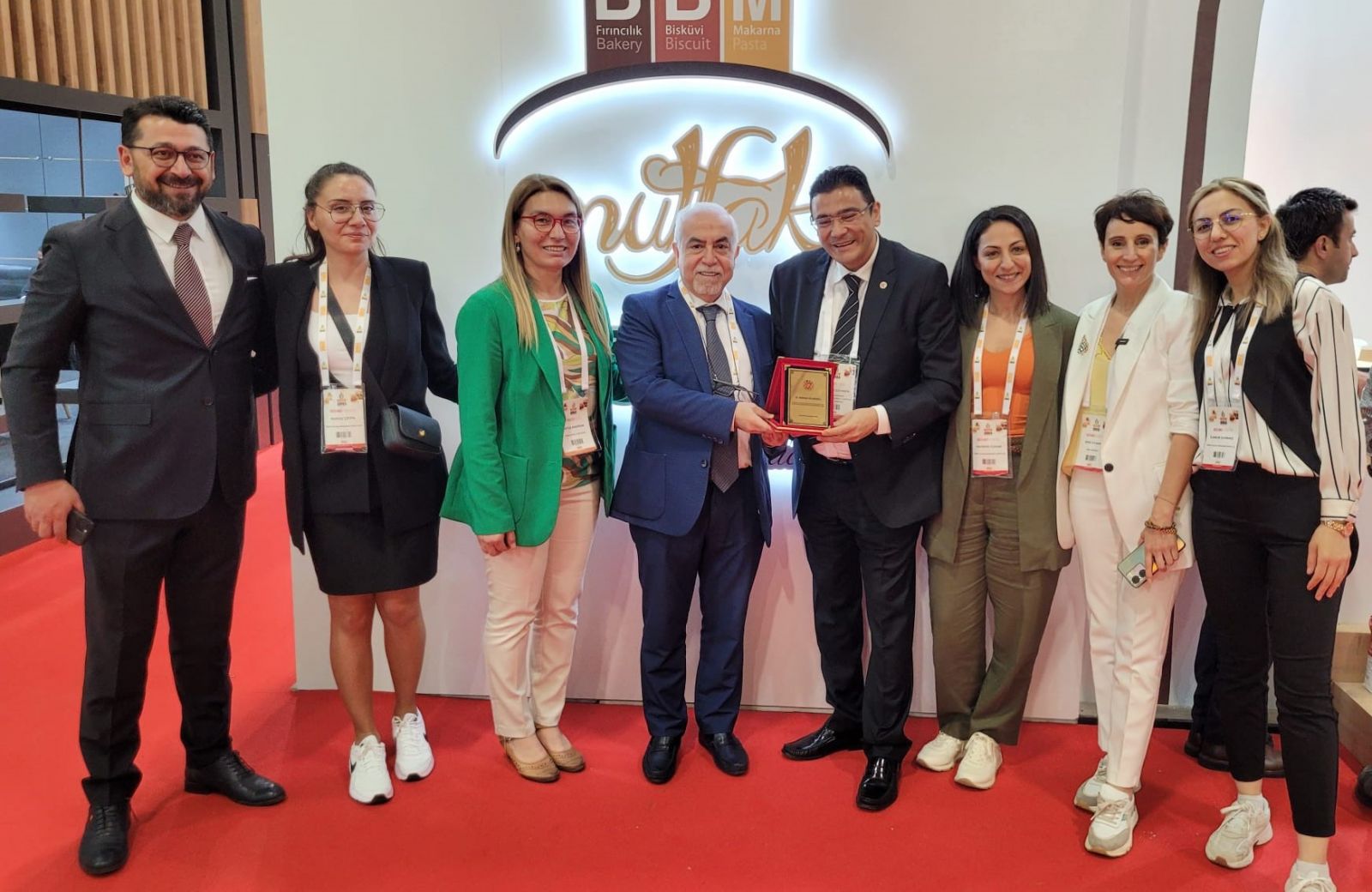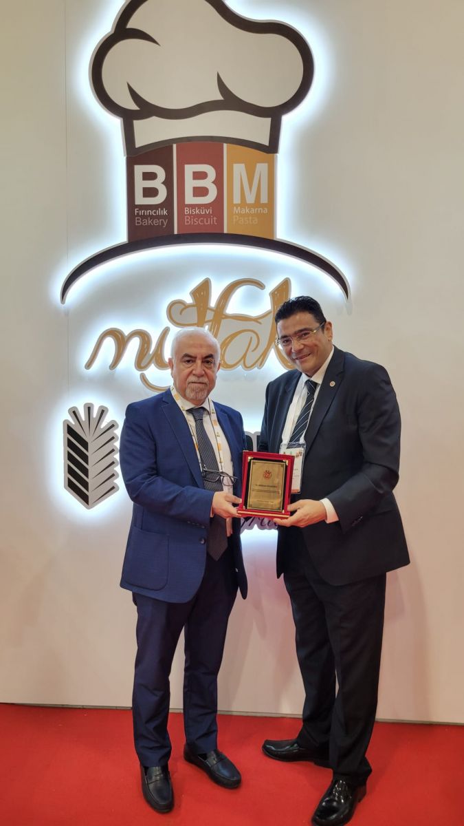 2-4 Mayis 2024 tarihleri arasında İstanbul Fuar Merkezinde yapılan IDMA Fuarı içerisinde yer alan BBM Mutfak Standında Türkiye Makarna Sanayicileri Derneği 26.Yonetim Kurulu Başkanı Sn. M. Aykut GÖYMEN ,21-25.Donem TMSD Yönetim Kurulu Başkanı olarak görev yapan ve aynı zamanda TMSD onursal üyesi olan Sn.Abdulkadir Külahcioglu'na , görev yaptığı süreçte sektöre yapmış olduğu katkılarından dolayı, sektörün dergisi BBM Standında, TMSD adına teşekkür plaketi takdim ettiler.