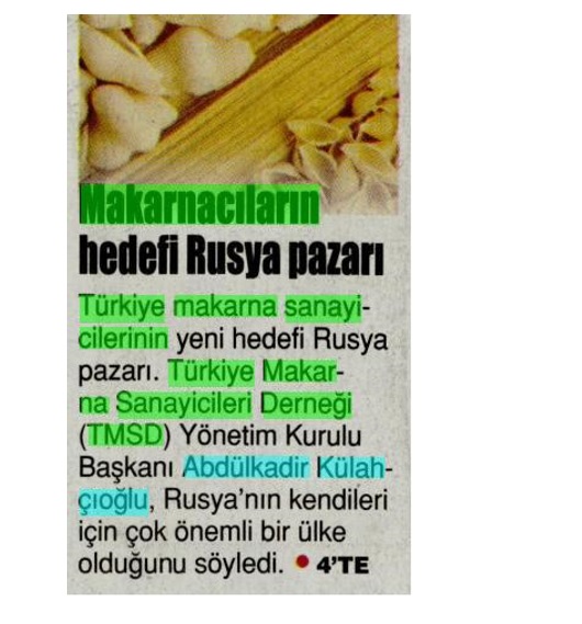 Makarna sanayicilerinin hedefi Rusya pazarı