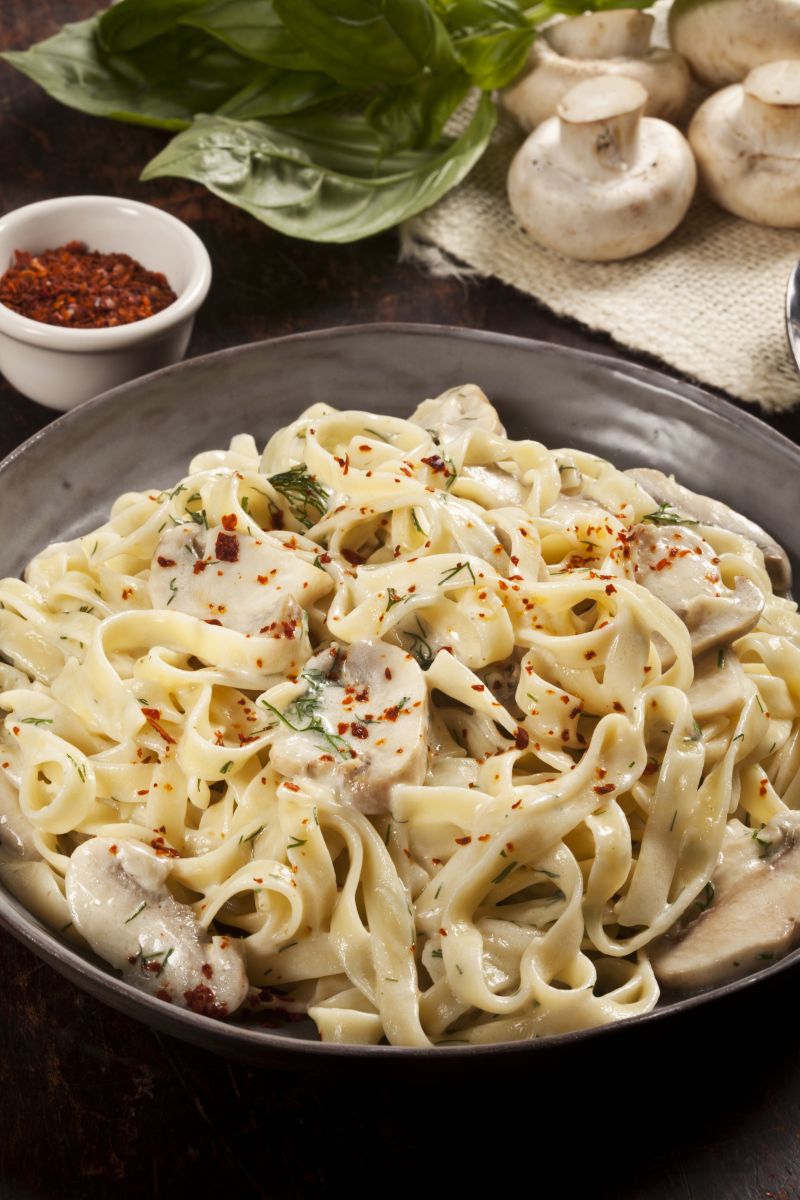 Makarnaları 1 tatlı kaşığı tuz ve 1 yemek kaşığı zeytinyağı ilave edilmiş kaynar suda 5-6 dakika haşlayın. Daha sonra süzüp kremalı sosla birlikte harmanlayın. İsteğe göre pul biber ve tuz ekleyin. Hemen servis yapın.