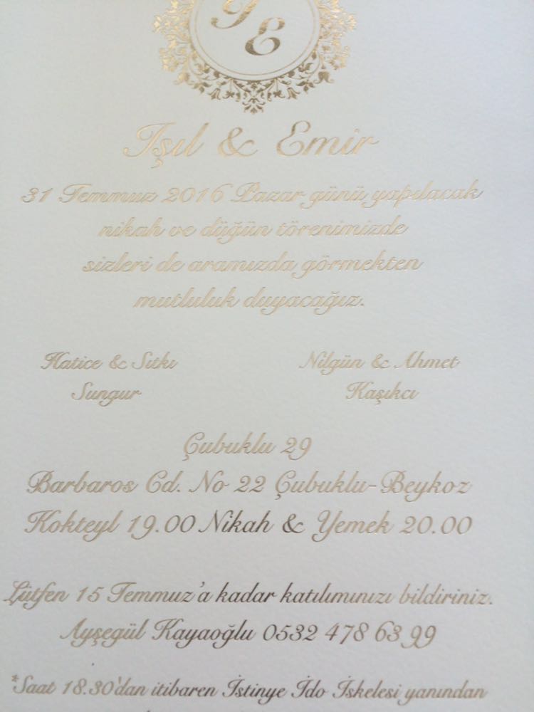 Üyelerimizden DOST Gıda Sanayi Ve Ticaret A.Ş.’nin Genel Müdür Yardımcısı Sayın Emir KAŞIKÇI ve Işıl SUNGUR Hanım 31 Temmuz 2016 Pazar akşamı Çubuklu 29’da yapılan nikah ve düğün töreniyle dünyaevine girmişlerdir.